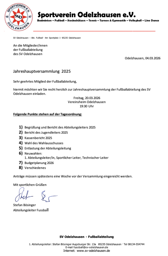 • Jahreshauptversammlung Abteilung Fußball 2026